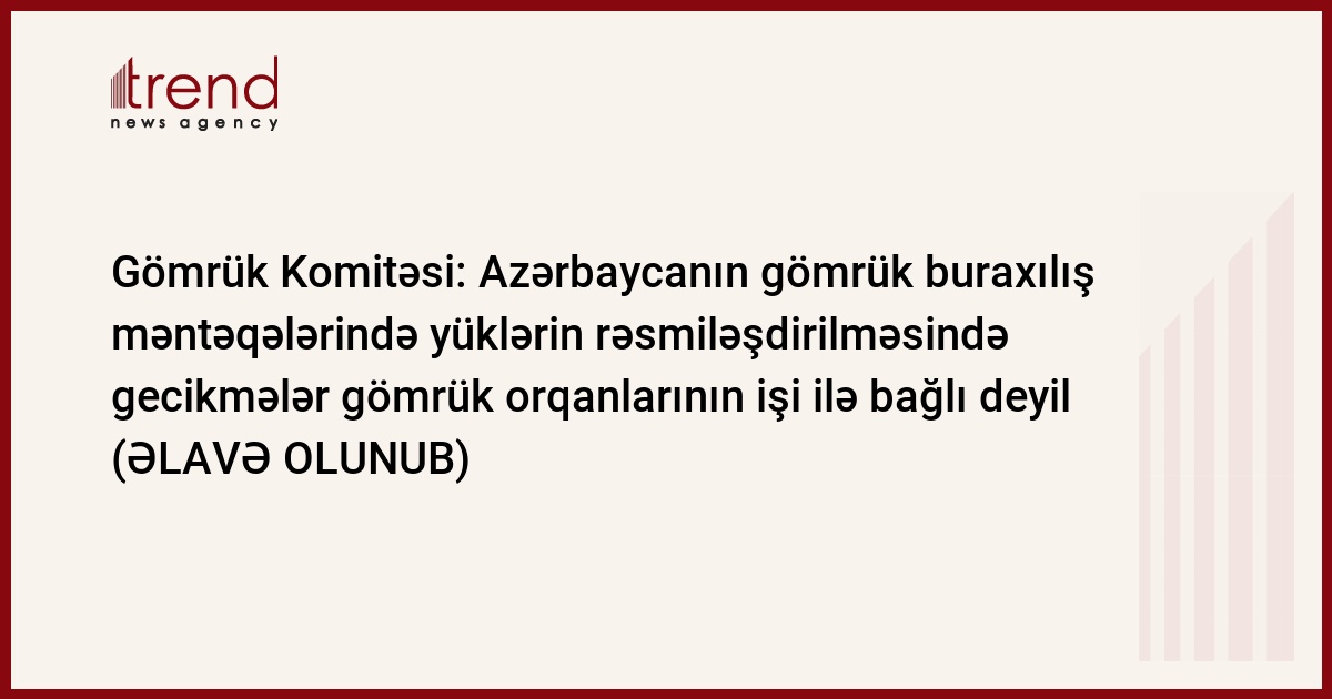 Azərbaycanın gömrük buraxılış məntəqələrində yüklərin rəsmiləşdirilməsi zamanı gecikmələr gömrük orqanlarının işi ilə bağlı deyil. Trend-in məlumatına görə, bunu jurnalistlərə Dövlət Gömrük Komitəsinin sədr müavini Səfər Mehdiyev deyib.