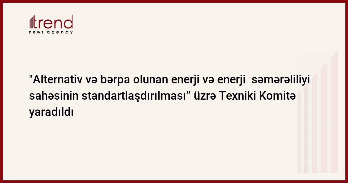 "Alternativ və bərpa olunan enerji və enerji səmərəliliyi sahəsinin standartlaşdırılması" üzrə Texniki Komitə yaradılıb.