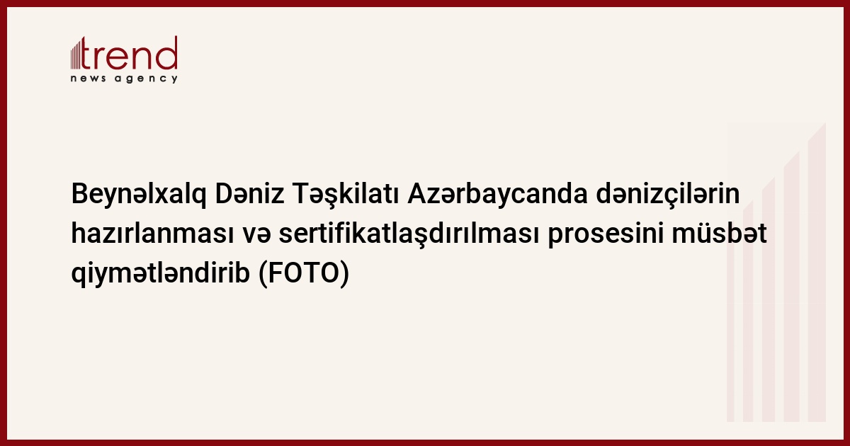Administrasiyanın mətbuat xidmətindən Trend-ə verilən məlumata görə, həyata keçirilən tədbirlər nəticəsində respublikamızda fəaliyyət göstərən Azərbaycan Dövlət Dəniz Akademiyası və təlim-tədris mərkəzləri ilə birlikdə tədris proqramlarının və dənizçilərin sertifikatlaşdırılması prosesinin Beynəlxalq Dəniz Təşkilatının "Dənizçilərin hazırlanmasına, onlara diplom verilməsinə və növbə çəkməyə dair 1978-ci il tarixli Beynəlxalq Konvensiya"sına uyğunlaşdırılması tam başa çatdırılıb.