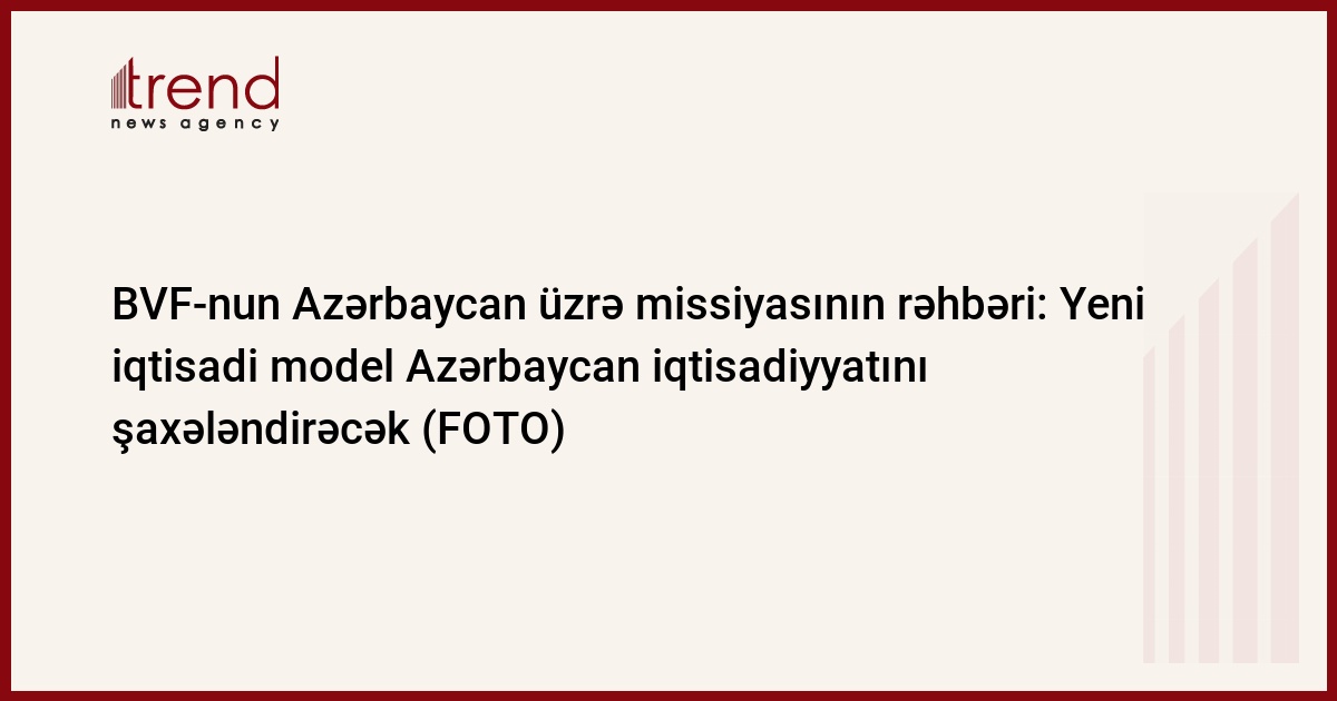 Beynəlxalq Valyuta Fondunun Azərbaycan üzrə missiyasının rəhbəri Məhəmməd əl-Qorçi Azərbaycandakı son iqtisadi proseslər, aparılan struktur islahatları barədə danışıb. Ölkədəki iqtisadi durumun sürətlə dəyişdiyini bildirən missiya rəhbəri, bunu iqtisadi-siyasi tədbirlərin həyata keçirilməsinin nəticəsi kimi dəyərləndirib. Bildirib ki, ölkənin özəl və qeyri-neft sektorlarının inkişafını nəzərdə tutan yeni iqtisadi model Azərbaycanda iqtisadiyyatın şaxələnməsinə gətirib çıxaracaq.