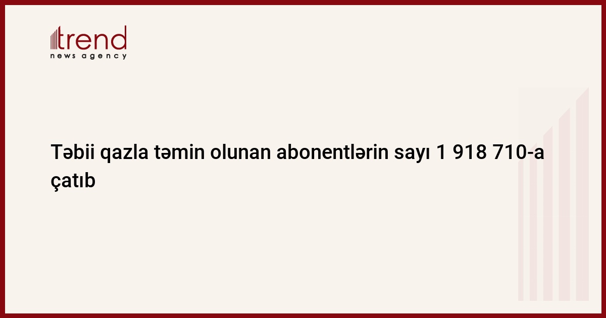 Trend SOCAR-ın saytına istinadən xəbər verir ki, bununla da, ölkə üzrə təbii qazla təmin olunan abonentlərin sayı 1 918 710-a çatıb.