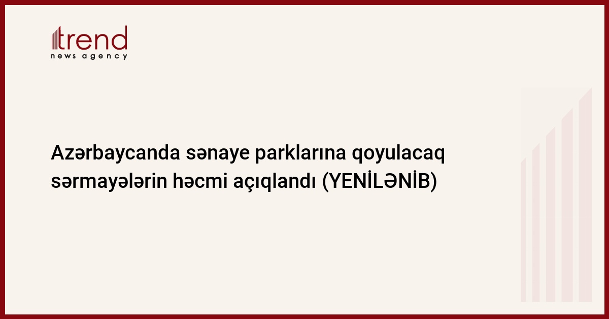 Azərbaycanın sənaye parkları və məhəllələrinə 1,1 milyard manatdan çox sərmayə qoymaq planlaşdırılır.