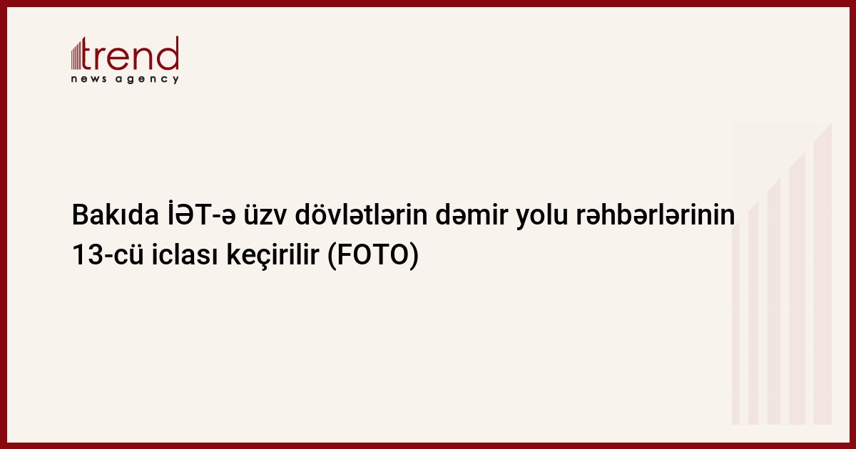 Aprelin 17-18-də Bakıda “İqtisadi Əməkdaşlıq Təşkilatına üzv dövlətlərin dəmir yolu rəhbərlərinin 13-cü iclası”, “İƏT-in Tranzit Nəqliyyatı üzrə Əlaqələndirmə Şurasının (TTCC) Dəmir Yolu Komitəsinin 7-ci iclası” və “İƏT-in Qəzvin-Rəşt-Astara (İran)- Astara (Azərbaycan) dəmir yolu layihəsi üzrə yüksək səviyyəli işçi qrupunun 3-cü iclası” keçirilir.