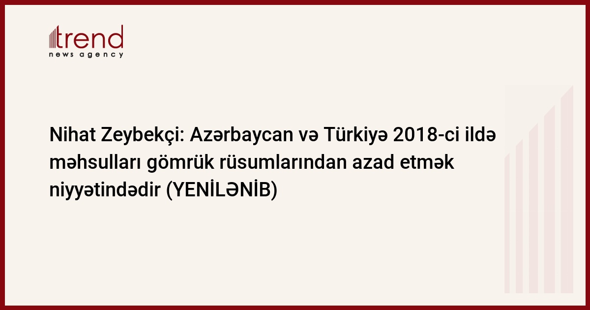 Türkiyə 2018-ci ildə Azərbaycanla məhsul tədarükünə gömrük rüsumlarına sıfır faiz dərəcəsinin tətbiq olunmasına ümid edir.