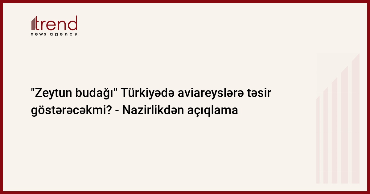 Nazirlikdən deyilib ki, Suriyanın şimalında aparılan əməliyyatlar Türkiyənin sərhədyanı vilayətlərinə həyata keçirilən uçuşların ləngiməsinə səbəb olmayacaq.