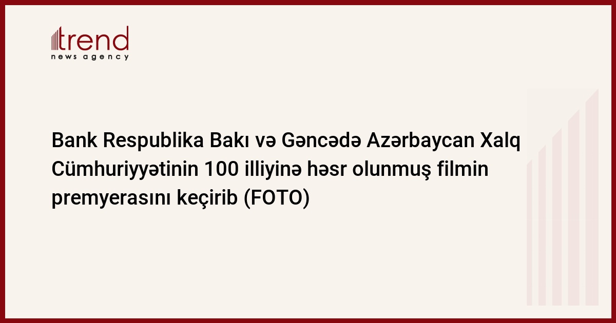 Bank Respublika Azərbaycan Xalq Cümhuriyyətinin 100 iliyinə həsr olunmuş “İstiqlaliyyət” adlı bədii-sənədli film təqdim edib.