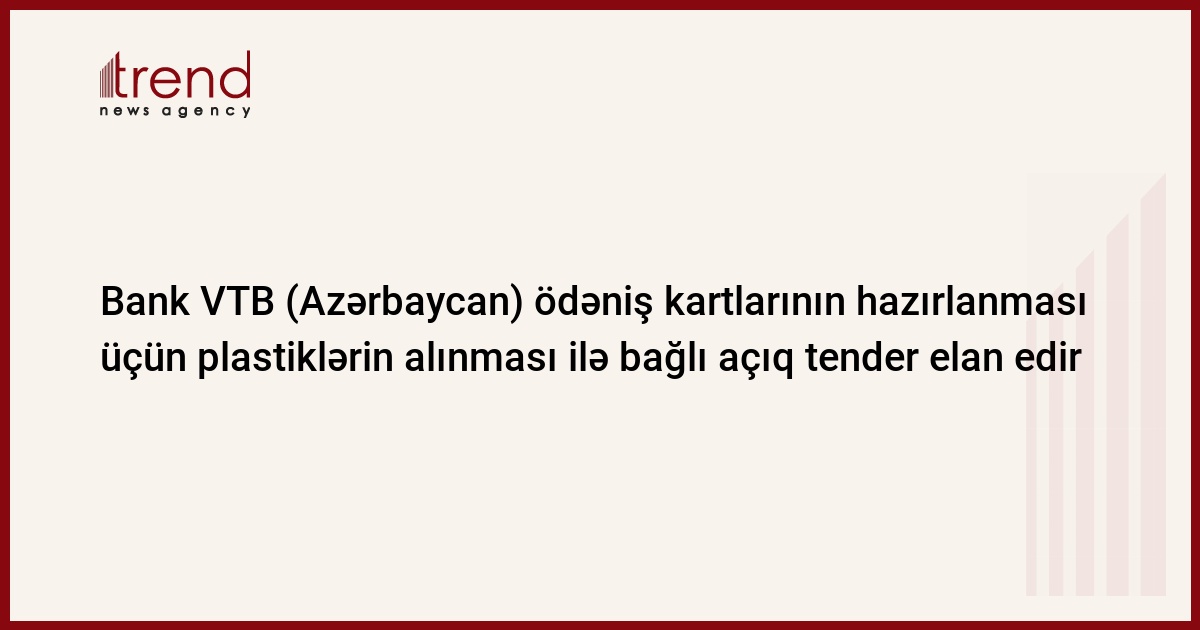 Bank VTB (Azərbaycan) ASC ödəniş kartlarının hazırlanması üçün plastiklərin alınması ilə əlaqədar açıq tender elan edir.