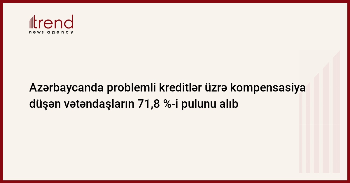 Prezident İlham Əliyevin "Fiziki şəxslərin problemli kreditlərinin həlli ilə bağlı əlavə tədbirlər haqqında" fərmanının çərçivəsində ABŞ dolları ilə götürülmüş kreditlər üzrə 71,8% vətəndaşa kompensasiya ödənişi edilib.