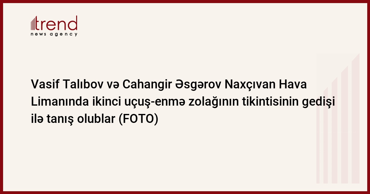 Naxçıvan Muxtar Respublikası Ali Məclisinin Sədri Vasif Talıbov və “Azərbaycan Hava Yolları” QSC-nin Prezidenti Cahangir Əsgərov 2 avqust tarixində tikinti işlərinin gedişi ilə tanış olmuşlar.