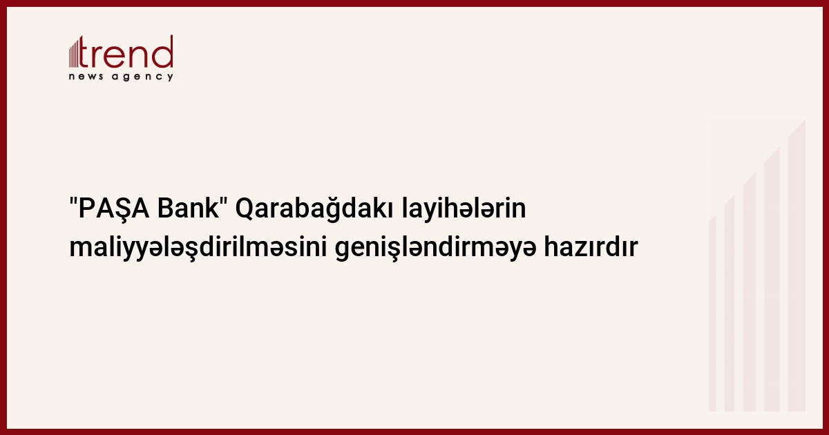 "PAŞA Bank" Qarabağda reallaşdırılan layihələrin maliyyələşdirilməsi üzrə planları genişləndirməyə hazırdır.