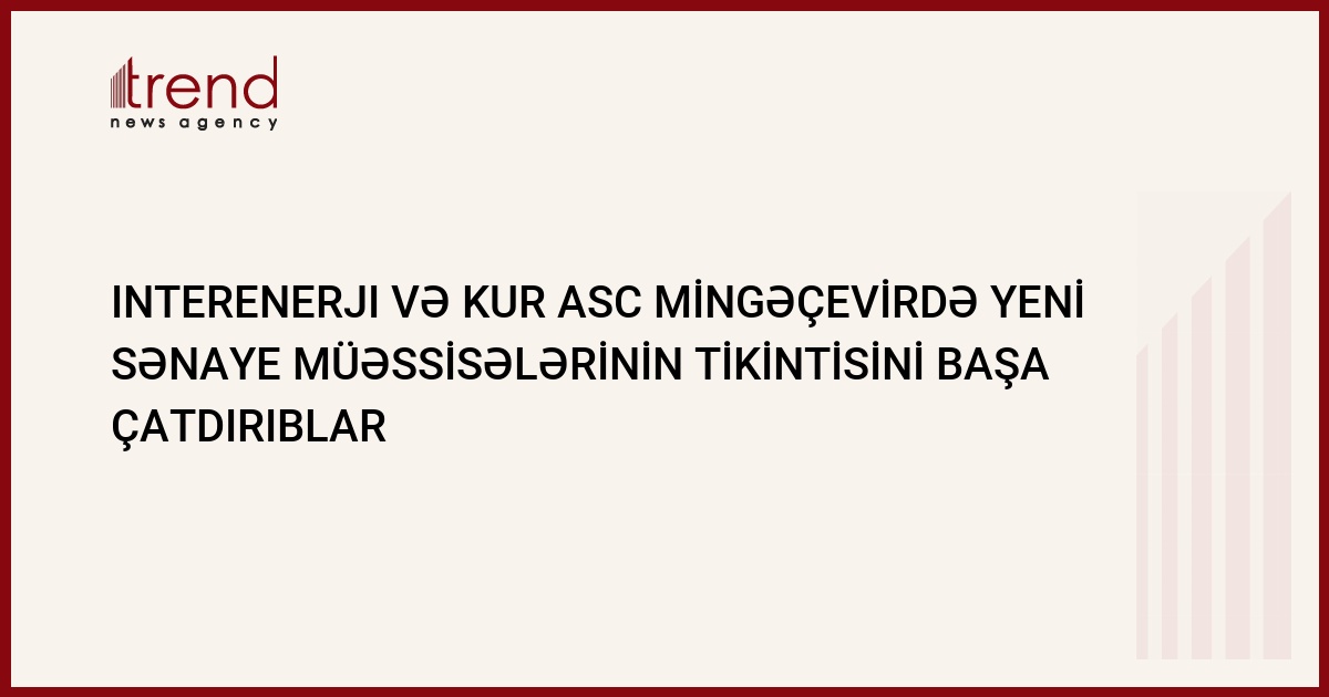 Interenerji və Kur Məhdud Məsuliyyətli Cəmiyyətləri Mingəçevirdəiki sənaye müəssisəsinin tikintisinibaşa çatdırıblar. Bu barədə Trend şəhərin icra hakimiyyətindən məlumat veriblər. "Əsas tikinti işləri başa çatıb və montaj işləri həyata keçirilir" - deyəMingəçevirin icra hakimiyyətindən bildiriblər.