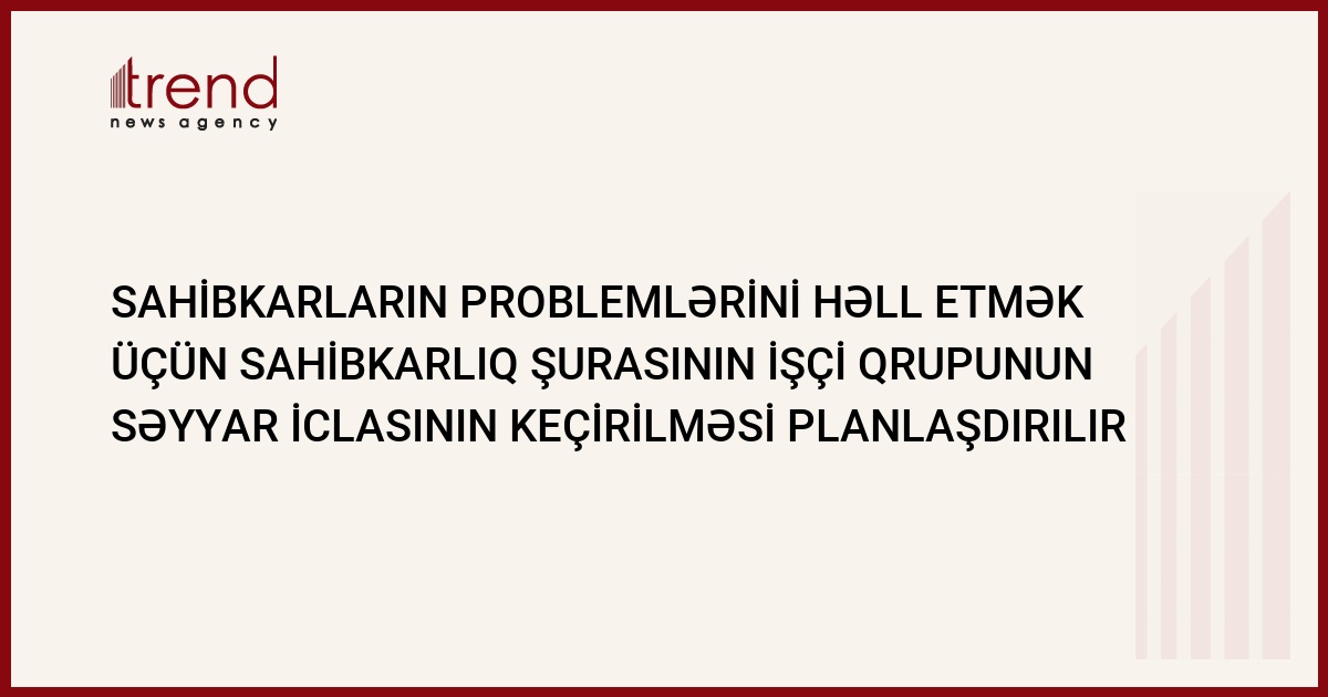 Azərbaycan prezidenti yanındaSahibkarlar Şurasının regional inkişafı üzrə işçi qrupuölkənin regionlarında işgüzar mühitdəki vəziyyətlə bağlı müzakirələri genişləndirməyi planlaşdırıb. İşçi qrupunun rəhbəri, AzinshaatHolding-in prezidenti Natiq Şirinzadə Trend ə bildirdiyinə görə, iclasdan sonra regionlardan alınan materiallar bu məsələnin həllilə bağlı aparılan sorğular və müzakirələrin faydalı olduğunu sübut edir. Materiallar mayın 17-də, sahibkarların müvafiq sorğusunun müzakirəsi ilə bağlı aparılan iclasda səsləndirilib.
