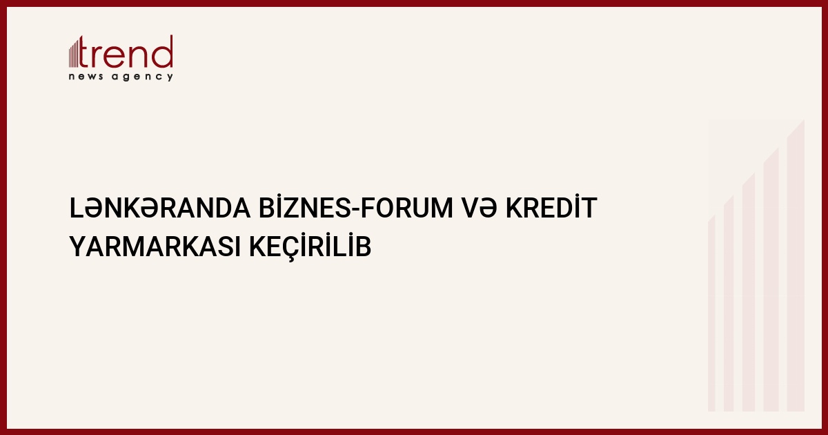 İyunun 24-də Lənkəran rayonunda biznes -forum və kredit yarmarkası keçirilib. Trend in verdiyi xəbərə görə, keçirilən kredit yarmarkası zamanı Lənkəran, Astara və Lerik rayonundan olan sahibkarlara 25 milyon manat həcmində kredit verilib. Həmin kreditin turizm infrastrukturası, müd məhsullarının istehsalı, meyvə və tərəvəz konservi, bitkilik və heyvandarlıq sahəsində layihələrin həyata keçirilməsi üçün sərf edilməsi planlaşdırılıb ki, bu da 250 yeni iş yerinin açsılmasına imkan verəcək.