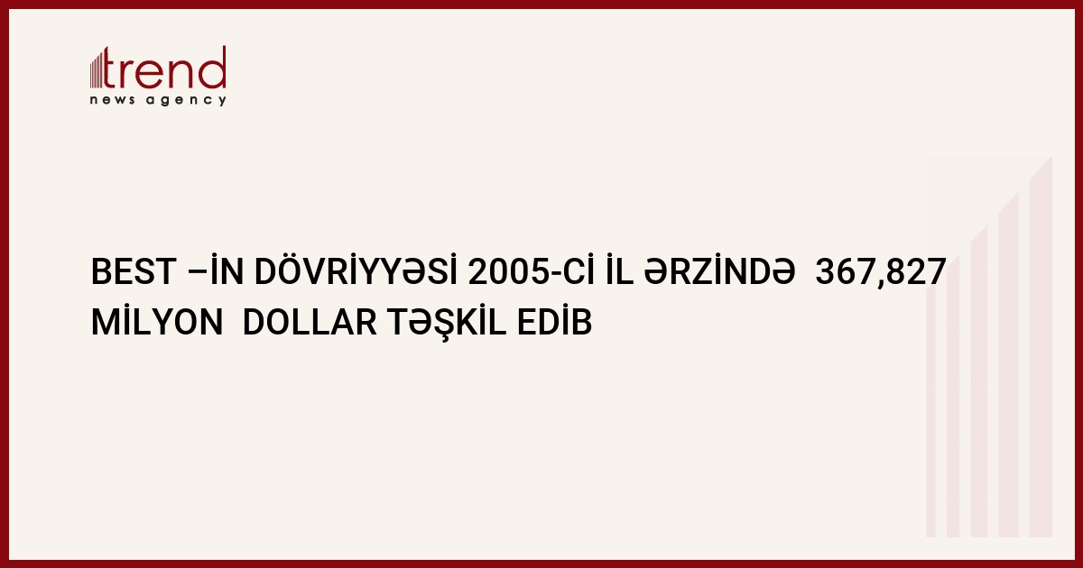 Bakı banklararası valyuta birjasının (BBVB)Elektron Ticarət Birja sistemində (BEST) dövriyyə iyünün 20-24-də ABŞ dolları ilə 15,895 milyon dollar təşkil edib. Trend ə BBVB-dan verilən məlumata görə, iyun ayında BEST-in dövriyyəsi (42,542 milyon dollar) may ayı ərzində olan dövriyyəyə (26,648 milyon dollar) 159,644% gkvivalentdir. 2005-ci ilin mart ayı ərzində 45,304% dövriyyə (93,904 milyon dollar) və 2004-cü ilin martı üçün rekord olan 43,592% (97,59 milyon dollar) dövriyyə, həmçinin 2003-cü ilin dekabrı üçün 42,361% rekord (BEST -in bütün tarixi ərzində) dövriyyə (100,428 milyon dollar) təşkil edib.