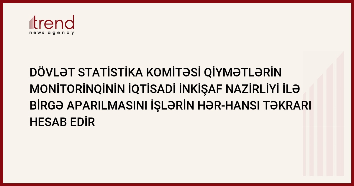 Dövlət statistika komitəsi topdan və pərakəndə satış qiymətlərinin monitorinqinin keçirilməsi üçün heç bir səbəb görmür. Trend agentliyinin məlumatına əsasən, iyulun 18-də bu barədə Dövlət statistika komitəsinin rəhbəri Arif Vəliyev bildirib.