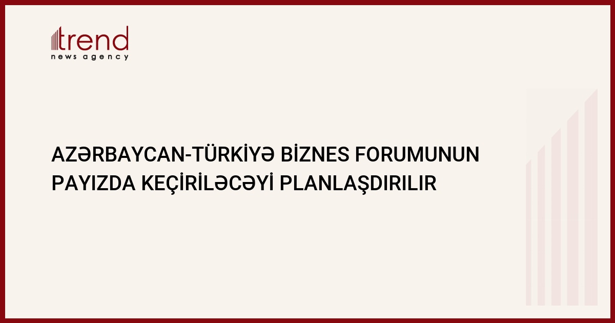 Azərbaycan-Türkiyə biznes forumunun cari ilin payızında keçirilməsi planlaşdırılır. Prezident yanında sahibkarlıq şurası katibliyinin rəhbəri Əlihüseyn Şaliyevin Trend ə bildirdiyi kimi, bu tədbir cari ilin sentyabr-oktyabr aylarında keçiriləcək.