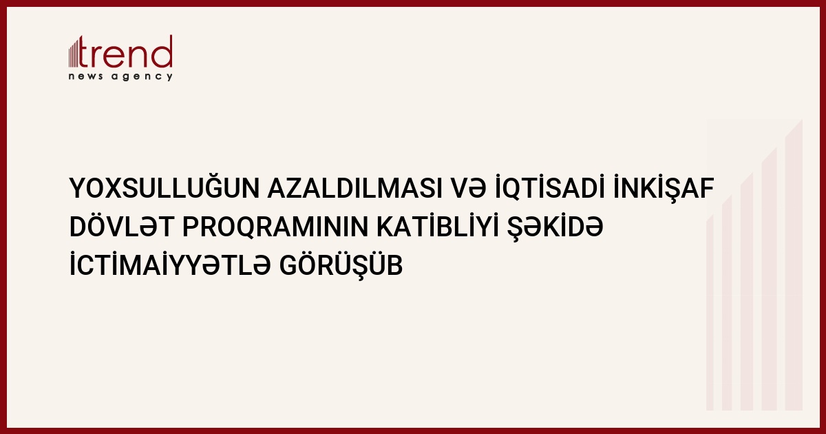 Yoxsulluğun azaldılması və iqtisadi inkişaf Dövlət proqramının katibliyi Şəki şəhərində ictimaiyyətlə görüşüb.Dövlət proqramının katibliyində Trend agentliyinə bildirilib ki, tədbirdə qəçqın və məcburi köçkünlərin həyat səviyyəsinin yaxşılaşdırılması üçün gerçəkləşdirilən işlər, regional infrastruktur, kənd təsərrüfatı məsələləri müzakirə edilib.