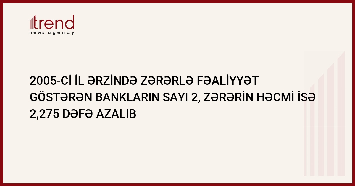 Beləliklə, 2005-ci il ərzində zərərlə fəaliyyət göstərən bankların sayı 2 dəfə, zərərlərin həcmi isə 2,275 dəfə azalıb.
