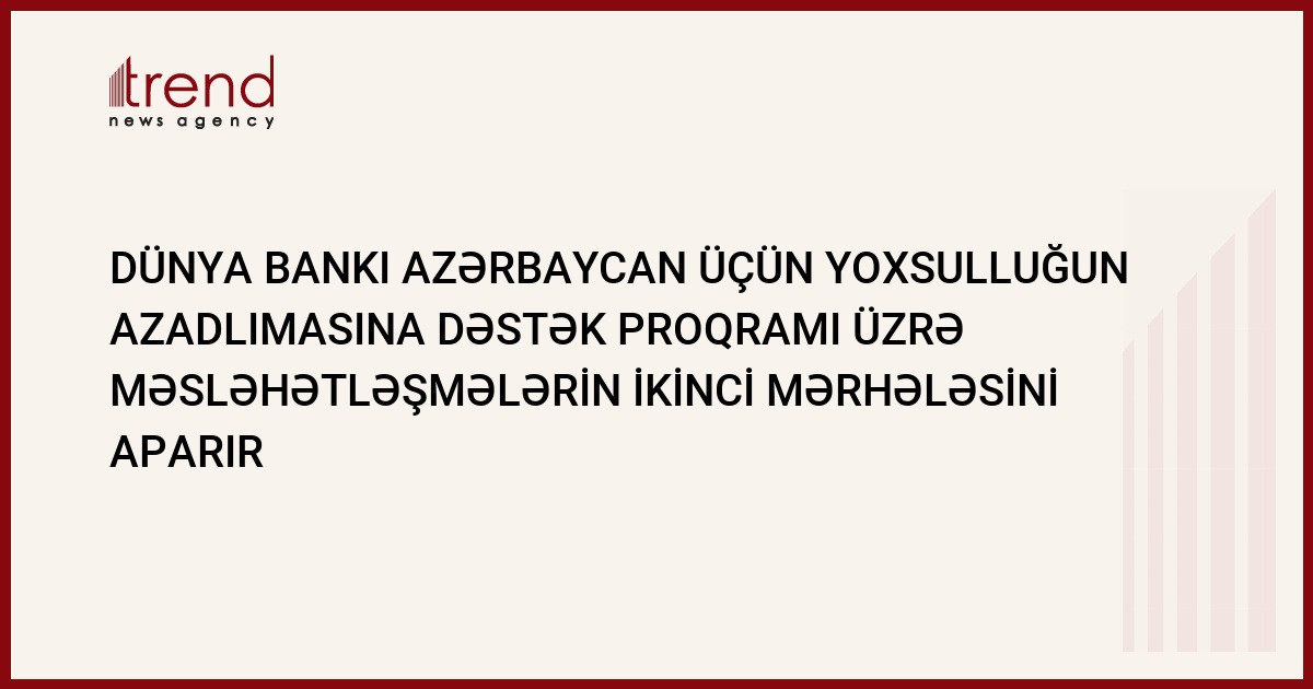 Dünya Bankı "İnstusional inkişafaf texniki yardım"a (IBTA-2), həmçinin yoxsulluğun azaldılmasına dəstək (PRSC) üzrə kredit proqramı üçün ikinci kreditin reallaşdırılmasını nəzərdən keçirməyə başlayıb.