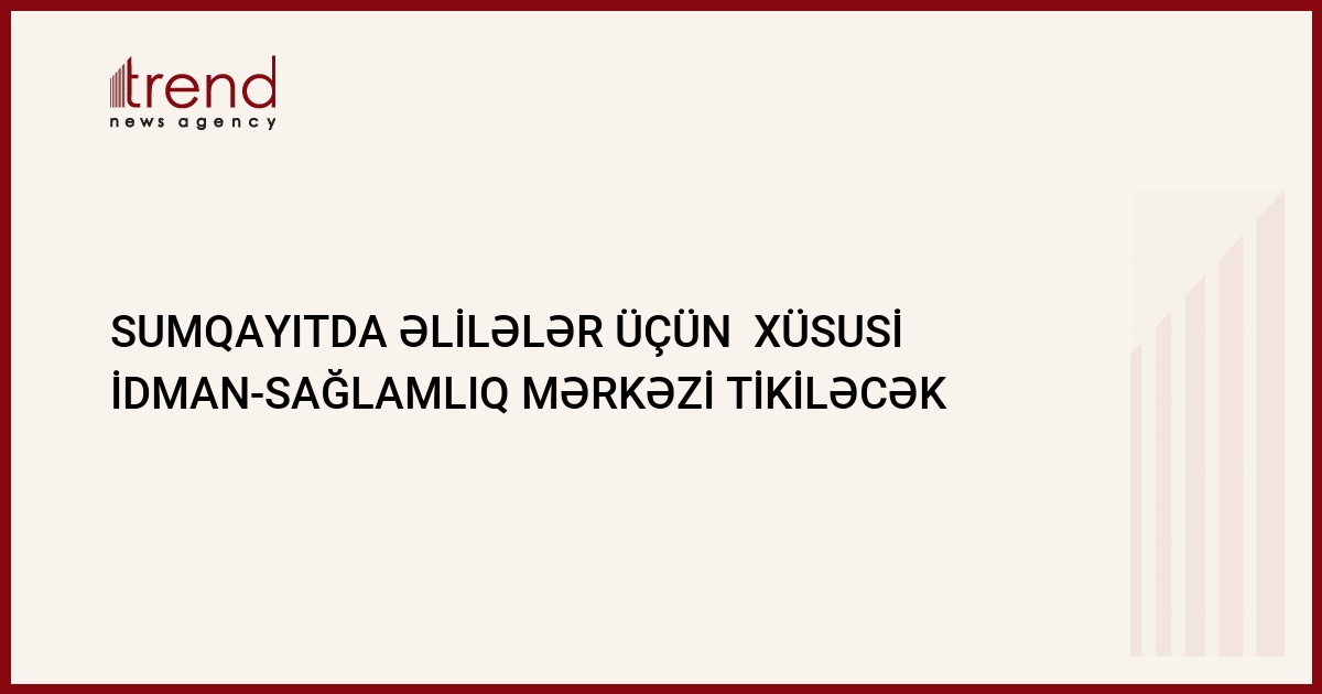 Sumqayıtda əlillər üçün xüsusi idman-sağlamlıq mərkəzi tikiləcək. Əmək və əhalinin sosial müdafiəsi Nazirliyindən Trend ə verilən məlumata görə, bu məqsədlə artıq müvafiq tender elan edilib.