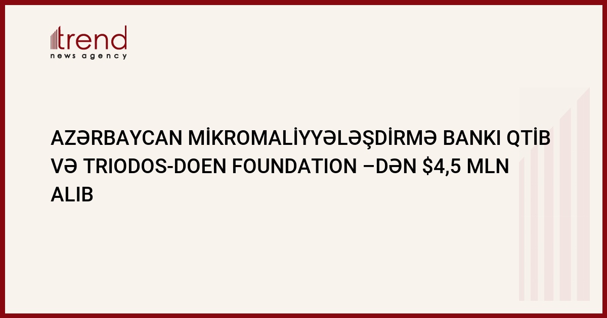 Azərbaycan mikromaliyyələşdirmə bankı (AMMB) mikro və kiçik maliyyələşdirmənin inkişafı üçün $4,5 mln. həcmində 2 kredit xəttinə dair saziş imzalayıb.AMMB-də Trend agentliyinə bildirilib ki, Qara dəniz ticarət və inkişaf bankı (QTİB) $3 mln., Dutch Stiehting Triodos-Doen isə $1,5 mln. təqdim edib.