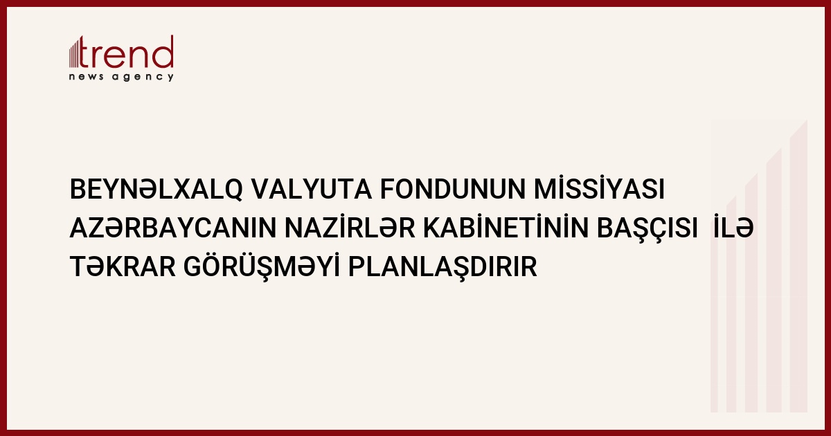 Beynəlxalq Valyuta Fondunun (BVF) missiyası səfərinin sonunda Azərbaycan hökumətinə bir sıra tövsiyyələri özündə əks etdirən yazılı sənəd hazırlayıb. Nazirlər Kabinetindən Trend ə verilən məlumata görə, bu təşəbbüs BVF-nun Yaxın Şərq və Mərkəzi Asiya üzrə Departamentinin direkto müavini Vitali Kramarenkonun başçılıq etdiyi missiyanın ölkə hökumətinin rəhbəri Artur Rasizadə ilə görüşü zamanı irəli sürülüb.