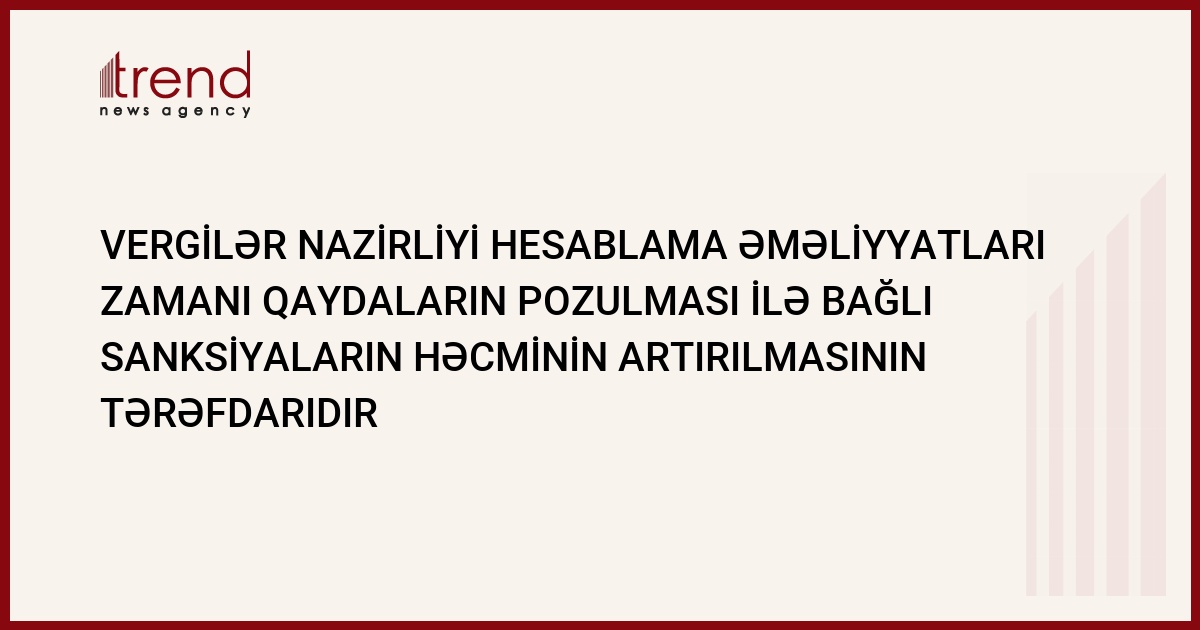 Azərbaycanın Vergilər Nazirliyi hesablama əməliyyatları yerinçə yetirilərkən qaydaların pozulmasına görə sanksiyaların həcminin artırılmasının tərəfdarıdır.