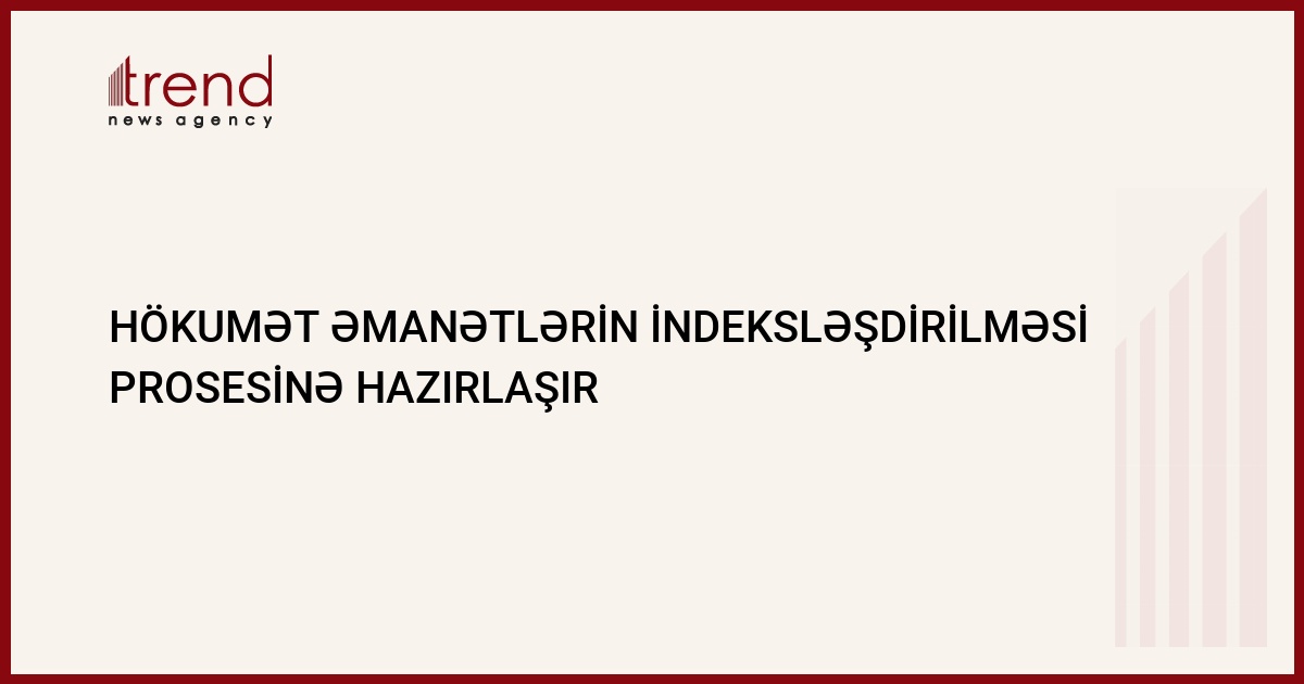 Azərbaycan hökuməti əmanətlərin indeksləşdirilməsi prosesinə hazırlaşır. Hökumətdən Trend ə verilən məlumata görə, bu prosesin 2006-cı ildən başlayaraq həyata keçirilməsi planlaşdırılır.