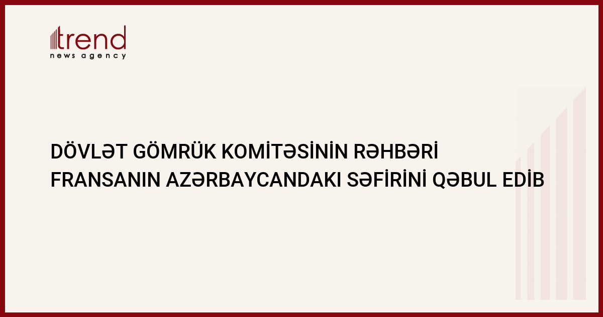 Sentyabrın 15-də AR Dövlət Gömrük Komitəsinin (DGK) sədri Kəmaləddin Heydərov Fransanın Azərbaycandakı fövqəladə və səlahiyyətli səfiri Rolan Blatmanı qəbul edib. DGK-də Trend ə bildirilib ki, görüşdə həmin ölkə ilə təkcə gömrük sahəsində deyil, həm də iqtisadiyyatın digər sahələrində gələcək inkişaf məsələləri müzakirə edilib.