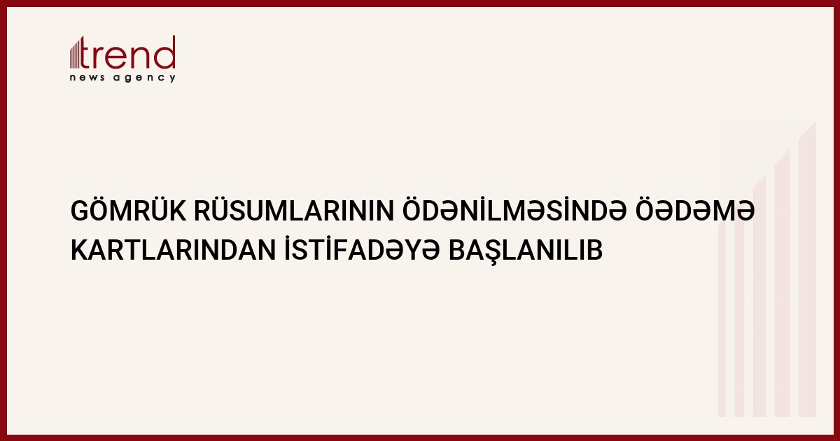 Gələcəkdə görük rüsumlarının ödənilməsi bankomatlar və İnternet-bankinq vasitəsilə həyata keçirilə bilər. Azericard prossesinq şirkətindən Trend ə verilən məlumata görə, cari ilin sentyabrından əvvəllər nəqd ödəniş yolu ilə həyata keçirilən gömrük rüsumlarının ödənilməsi plastik kartlar vasitəsilə ödənilir.