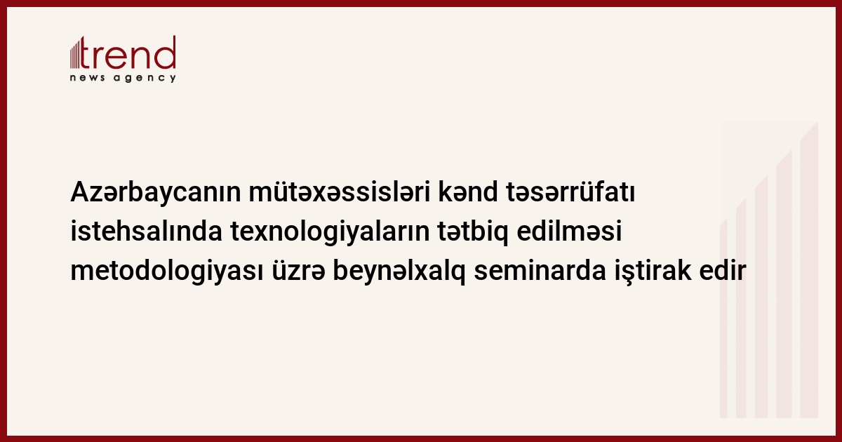 Azərbaycanın mütəxəssisləri ICARDA (International Center for Agricultural Reseach in the Dry Areas) tərəfindən təşkil edilmiş beynəlxalq seminarda iştirak edir.AR kənd təsərrüfatı nazirliyində Trend ə bildirilib ki, seminar noyabrın 21-dən 26-dək Daşkənddə keçiriləcək.