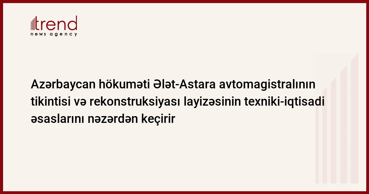 Azərbaycan hökuməti Ələt-Astara avtomagistralının tikintisi və rekonstruksiyası layizəsinin texniki-iqtisadi əsaslarını (TİƏ) nəzərdən keçirir. Bu barədə Trend ə Azərbaycanın Nəqliyyat Nazirliyindən məlumat verilib.