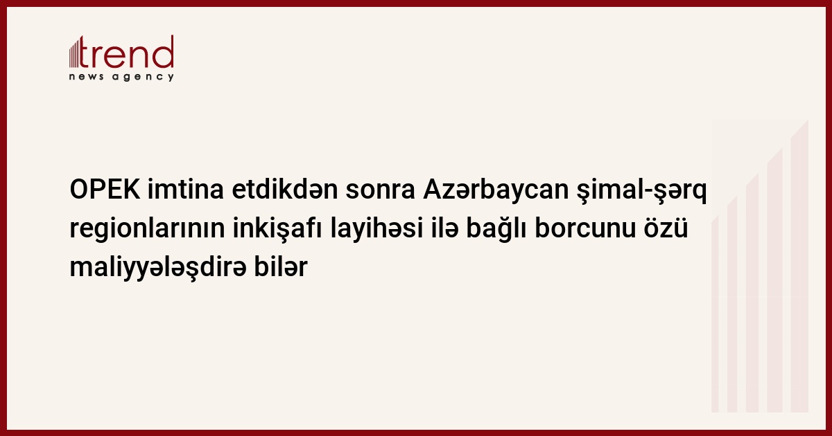 OPEK beynəlxalq iqtisadi inkişaf fondu şimal-şərq regionlarının inkişafı layihəsi ilə bağlı borcun maliyyələşdirilməsindən imtina etdikdən sonra Azərbaycan özü bu işi apara bilər. Bu barədə Trend ə eksklüziv olaraq ölkənin kənd təsərrüfatı naziri İsmət Abbasov bildirib.