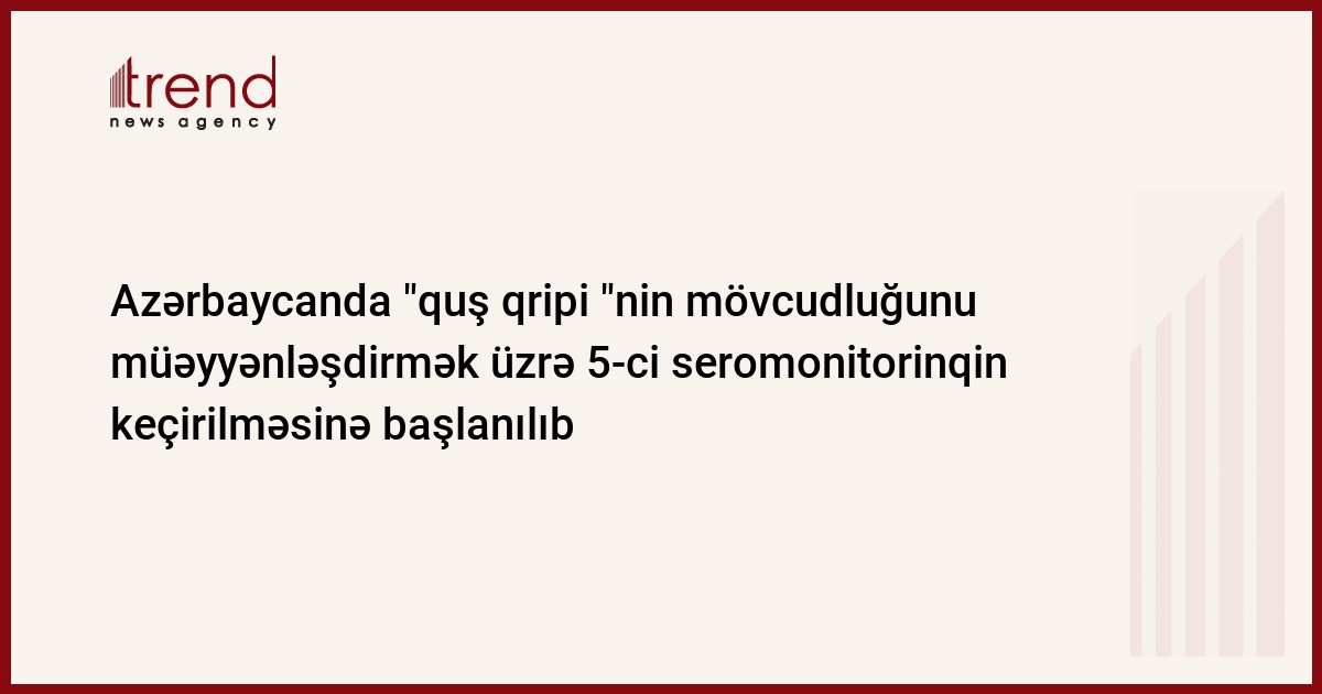Dekabrın 19-dan Azərbaycanda "quş qripi"nin mövcudluğunun müəyyən olunması üzrə növbəti seromonitorinqin keçirilməsinə başlanılıb. Trend in məlumatına görə, bu barədə Kənd Təsərrüfatı Nazirliyi yanında Dövlət Baytarlıq Xidmətinin yaydığı press-relizdə bildirilir.