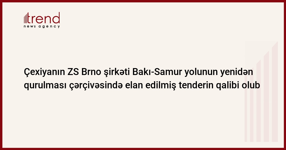 Azərbaycanın Nəqliyyat naziri Bakı-Samur yolunun bir hissəsinin yenidən qurulması üzrə tenderi bağlı elan edib. Tenderin qalibi Çexiyanın ZS Brno şirkəti olub. Bu şirkətin subpodratçısı isə Azərbaycanın Azərinşaatservis şirkəti olacaq. Bu barədə Trend ə nazirlikdən məlumat verilib. Layihə Çexiyanın "Eksimbank"ı tərəfindən maliyyələşəcək.