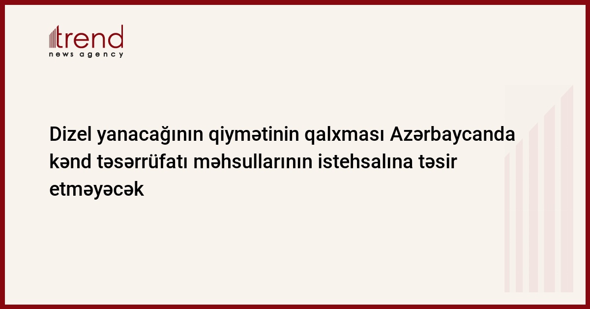 2006-cı ilin yanvarında dizel yanacağının pərakəndə satış qiymətlərinin qalxması Azərbaycanda kənd təsərrüfatı məhsullarının istehsalına təsir etməyəcək. Trend in xəbər verdiyi kimi, bu barədə fevralın 8-də kənd təsərrüfatı naziri İsmət Abasov bildirib.