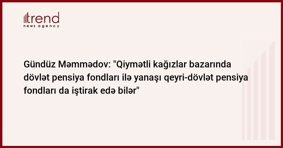 ""Pensiya fondları haqqında" Qanun qüvvəyə mindikdən sonra Qiymətli Kağızlar üzrə Dövlət Komitəsi Əhalinin Sosial Müdafiəsi Dövlət Fondu ilə qiymətli kağızlar bazarında qeyri-dövlət pensiya fondlarının iştirakı ilə bağlı fəal müzakirələr aparır. Qiymətli kağızlar üzrə Dövlət Komitəsinin sədri Gündüz Məmmədovun Trend ə verdiyi məlumata görə, bu məsələ ilə bağlı ƏSMDK-nın rəhbəri Səlim Müslümovla məsləhətləşmələr aparılıb. "Biz bununla əlaqədar qarşılıqlı fəaliyyət, ümumi layihələrin həyata keçirilməsi məsələlərini müzakirəyə çıxarmışıq. Vəsait cəlb etmək və gəlir götürmək üçün özəl pensiya fondlarının da QK bazarında iştirakına şərait yaratmaq lazımdır", - deyə G.Məmmədov bildirib.