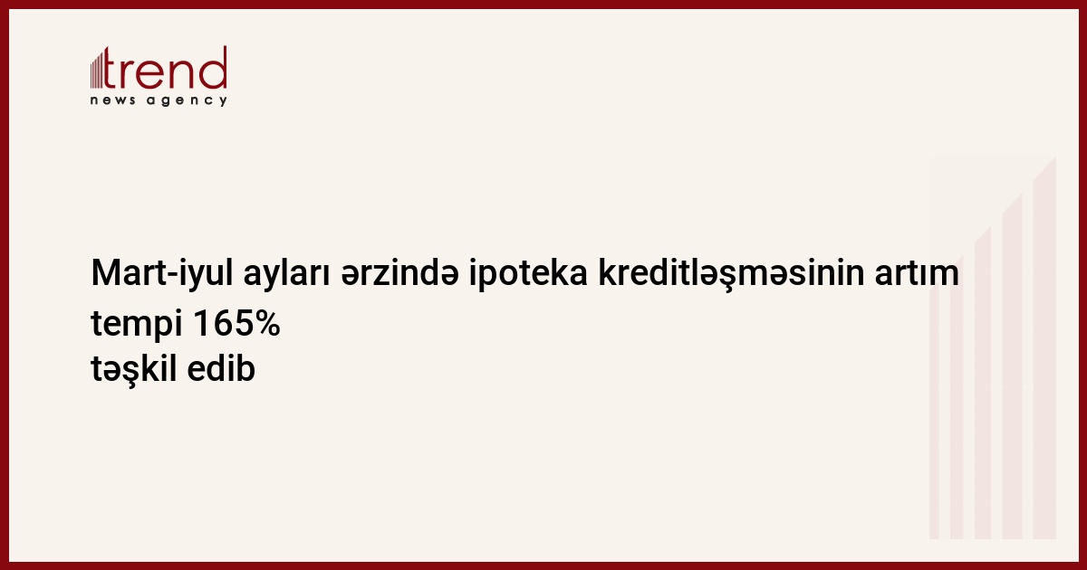 Azərbaycanda ipoteka kreditləşməsi sisteminin tətbiq olunduğu dövr ərzində Azərbaycan İpoteka Fondunun tərəfdaş bankları vasitəsilə 62 ipoteka krediti verilib. Bu barədə Trend ə AİF-dən bildirilib. Verilmiş ipoteka kreditlərinin ümumi məbləği 1,4 mln manatı keçir. Girov qoyulmuş mənzilin dəyəri isə 3 mln manat təşkil edir. Mart-iyul ayları ərzində artım tempi 165%-ə bərabərdir. Hazırda 150 kredit rəsmiləşdirilir.