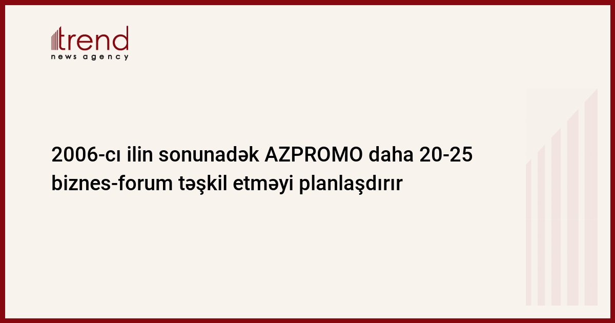 2006-cı ilin sonunadək Azərbaycan İnvestisiyaların Təşviqi və İxrac Fondu (AZPROMO) daha 20-25 biznes-forum təşkil etməyi planlaşdırır. AZPROMO-nun prezidenti Emil Məcidovun Trend ə verdiyi məlumata görə, bu il 40 biznes-forumun keçirilməsi planlaşdırılırdı.