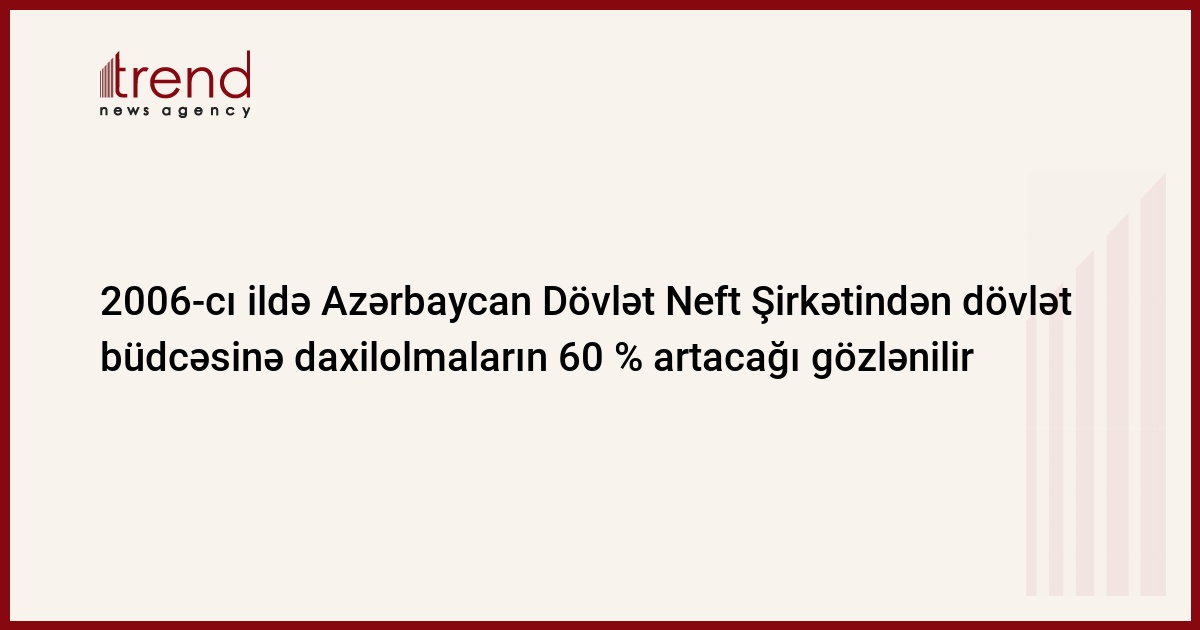 2006-cı il ərzində Azərbaycan Dövlət Neft Şirkəti müxtəlif növ vergi üzrə dövlət bücəsinə 866 mln. manat ödəmək niyyətindədir. Bu göstərici keçən ildəki daxilolmaların həcmi ilə müqayisədə 59,2% çoxdur.