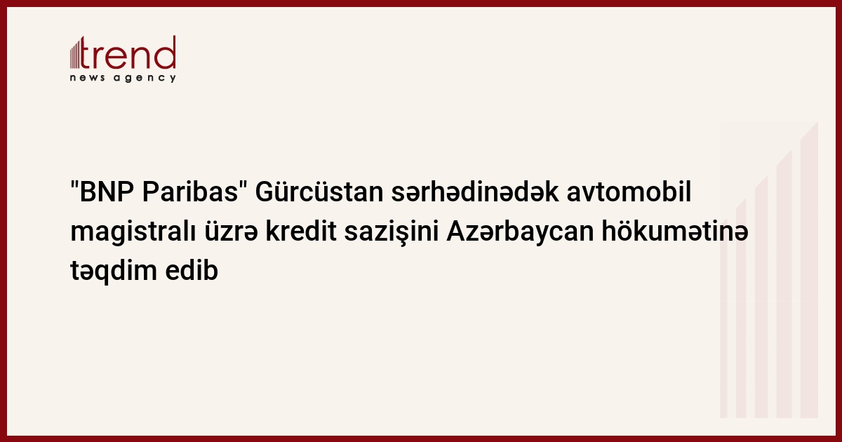 Fransanın "BNP Paribas" bankı Hacıqabuldan Gürcüstan sərhədinədək avtomobil magistralının iki zolaqlıdan dörd zolaqlıya genişləndirilməsi layihəsi üzrə kredit sazişini baxılmaq üçün Azərbaycan hökumətinə təqdim edib.