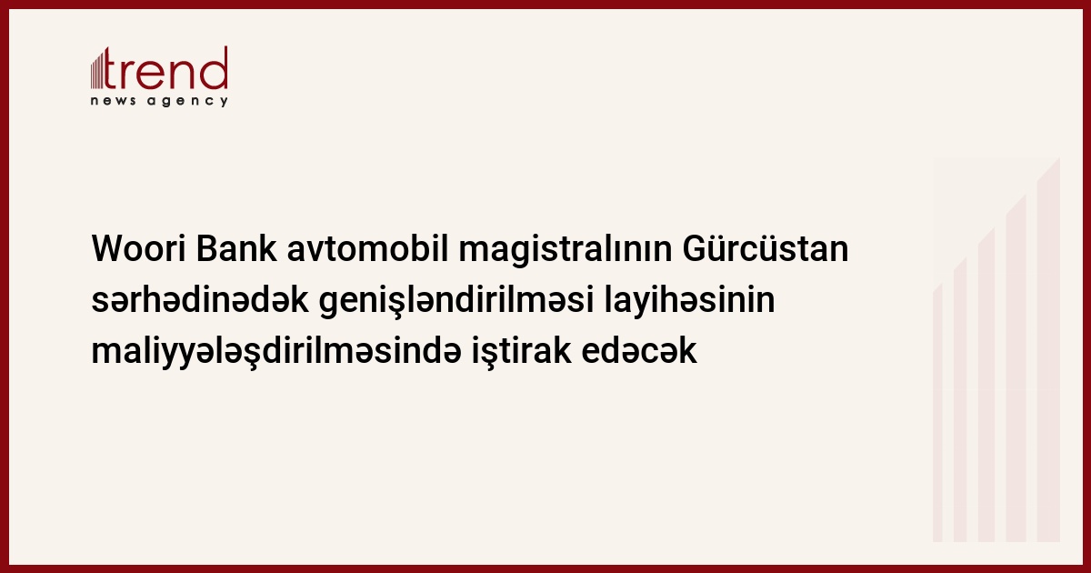 Koreyanın Woori Bank-ı Azərbaycan hökumətinə avtomobil yolunun Gürcüstan sərhədinədək genişləndirilməsi layihəsinin maliyyələşdirilməsində iştirak etməyə hazır olduğunu bildirib. Azərbaycanın Nəqliyyat Nazirliyindən Trend ə verilən məlumata görə, Koreya bankının Yevlaxdan Gəncəyədək 88,8 km uzunluğunda yolun maliyyələşdirilməsinə cəlb olunması artıq razılaşdırılıb.