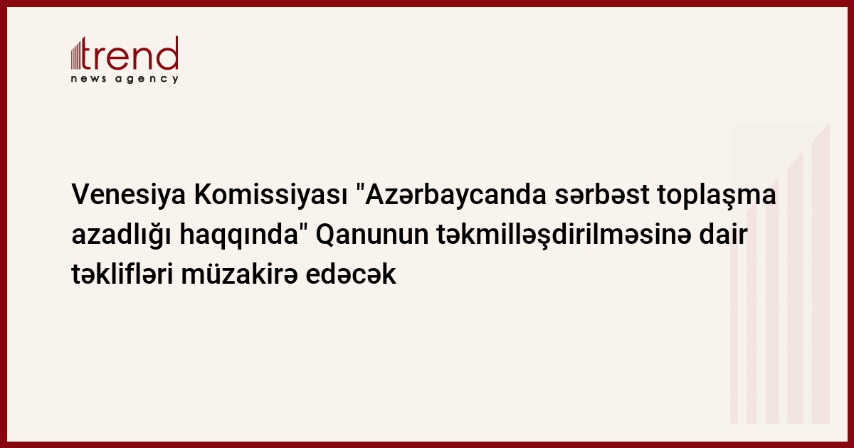 Komissiyanın sessiyası oktyabrın 13-14-də Venesiyada keçiriləcək. T.Mişelova qeyd edib ki, hazırda "Azərbaycanda sərbəst toplaşmaq azadlığı haqqında" qanunun təkmilləşdirilməsinə dair rəyin hazırlanması istiqamətində işlər başa çatmaq üzrədir və qanun bu həftənin sonunda müzakirə olunacaq.