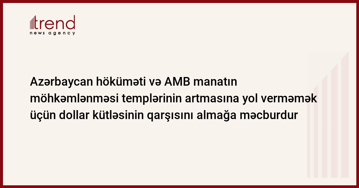Azərbaycan höküməti və Milli bank manatın möhkəmlənməsi templərinin sürətlənməsinə yol verməmək üçün artıq valyuta kütləsinin qarşısını almağa çalışırlar. Maliyyə naziri Samir Şərifov Trend ə bildirib ki, milli valyutanın möhkəmlənməsi ölkəyə neft-dollar axını ilə izah olunur.