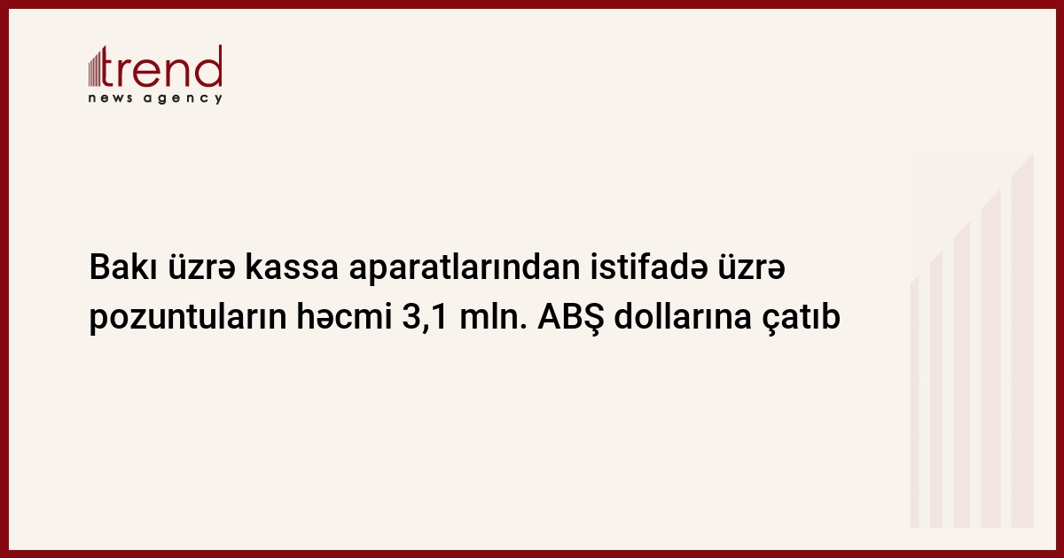 Trend Vergilər Nazirliyinin Operativ nəzarət idarəsinin press-relizinə istinadən xəbər verir ki, oktyabrın 25-nə olan məlumata görə, 30543 obyektdə qanunvericiliyin pozulması faktı aşkar edilib. Nəticədə bu obyektlərə 2 756,611 min manat məbləğində inzibati cərimə kəsilib.