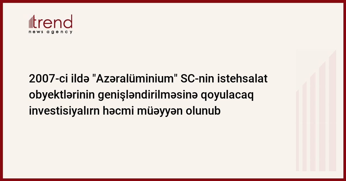 2007-ci ilin birinci yarısında "Azəraliminium" Sumqayıt səhmdar cəmiyyətində ikinci istehsalat korpusunun istismara verilməsi nəzərdə tutulub.