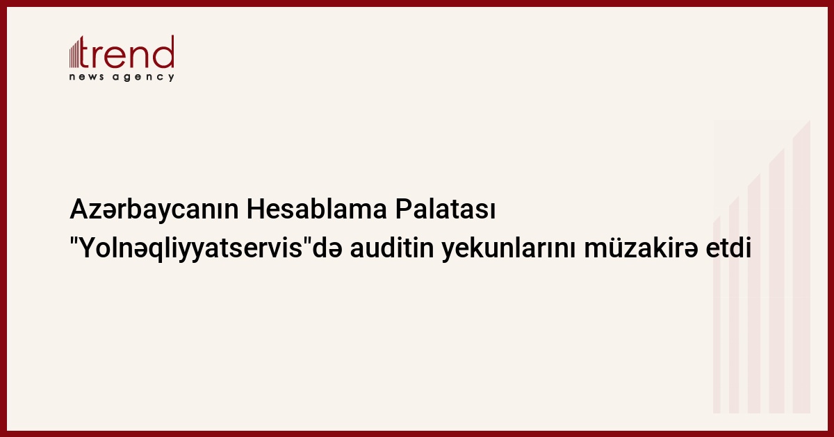 Azərbaycanın Hesablama Palatsı ( AHP) dövlət büdcəsindən Azərbaycan Nəqliyyat Nazirliyinin "Yolnəqliyyatservis" departamentində "Sənaye və tikinti xərcləri" şöbəsi üzrə 2004-2005-ci illərdə investisiya xərclərinə yönəldilmiş vəsaitlərin istifadə olunması üzrə auditin yekunlarını müzakirə edib.
