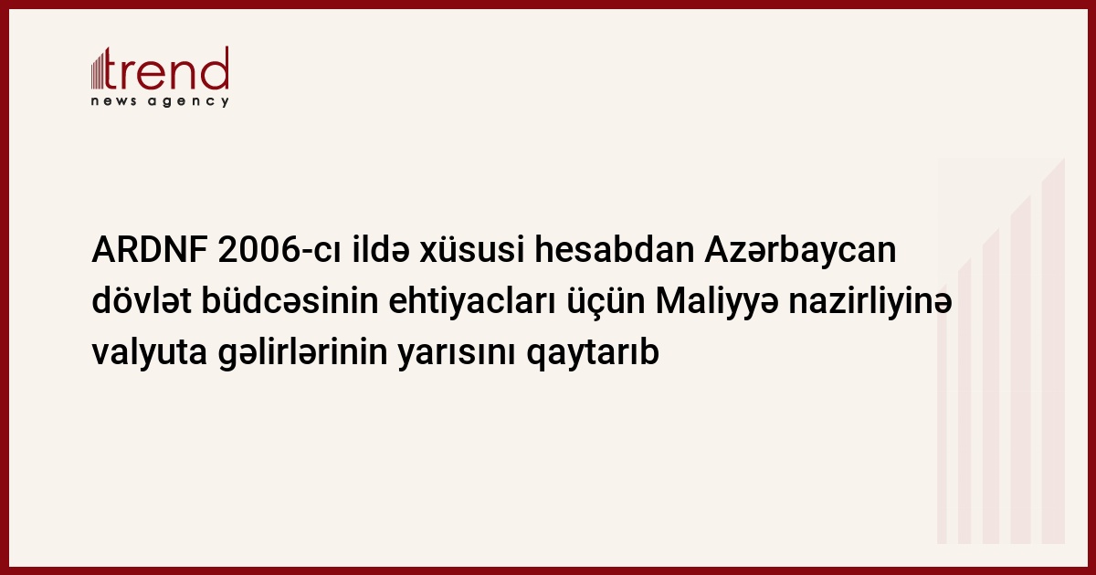 Azərbaycan Dövlət Neft Fondu və Maliyyə nazirliyi arasında 2006-cı ilin 11 avqustunda imzalanmış müqavilə əsasında bu gün fondun xüsusi hesabında büdcənin valyuta gəlirləri üzrə qalıqlar 460 mln dollar təşkil edir.