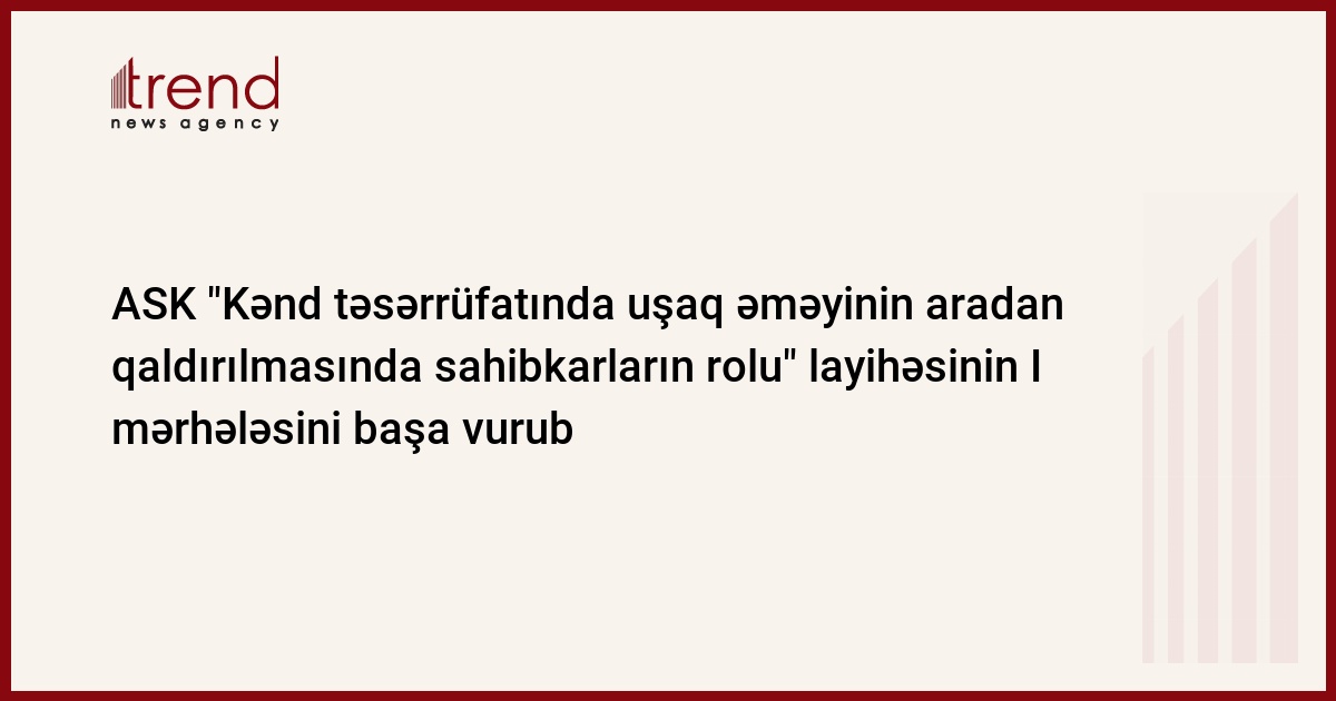 Milli Konfederasiyasının bu gün yaydığı məlumatına əsasən, Trend xəbər verir ki, Azərbaycan Sahibkarları Milli Konfederasiyası Beynəlxalq Əmək Təşkilatının dəstəyi ilə (EMP) "Kənd təsərrüfatında uşaq əməyinin aradan qaldırılmasında sahibkarların rolu" layihəsinin I mərhələsini başa vurub. Layihənin əsas məqsədi pambıqçılıq sahəsində uşaq əməyinin aradan qaldırılmasında sahibkarların imkanlarını genişləndirməkdən ibarətdir.
