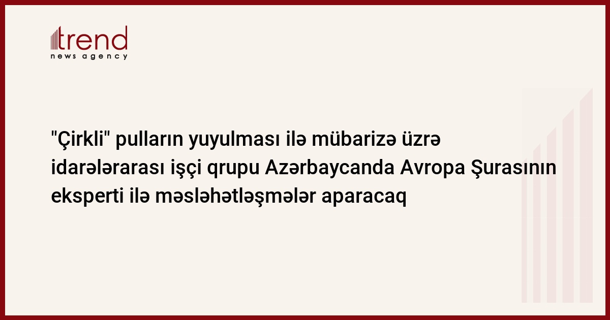 Gələn həftə Azərbaycanda "çirkli" pulların yuyulması və terrorun maliyyələşdirilməsi ilə mübarizə istiqamətində məsləhətləşmələrin aparılması üçün Avropa Şurasının eksperti Klaudio Stroliqonun Bakıya səfər edəcəyi gözlənilir.